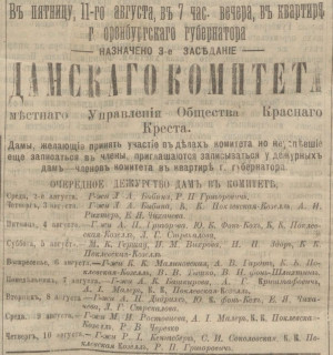 Архивный хронограф: 120 лет назад образован Дамский комитет Оренбургского управления Российского общества Красного Креста